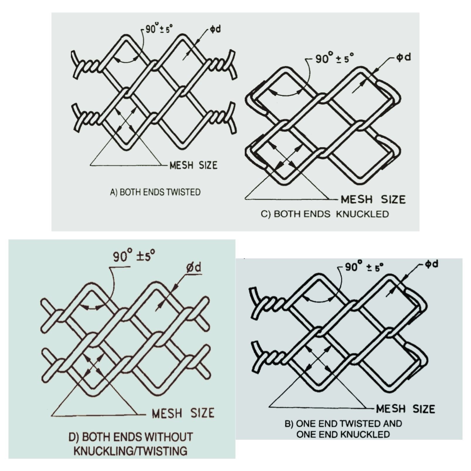 Fencing material made from steel wire from Mild steel wire with or without hot dipped Zinc coating helical wound and interwoven in such a manner as to provide a continuous mesh without knots or ties except in the form of knuckling or twisting the ends of the wires to form the selvage Knuckled or twisted as per requirement.